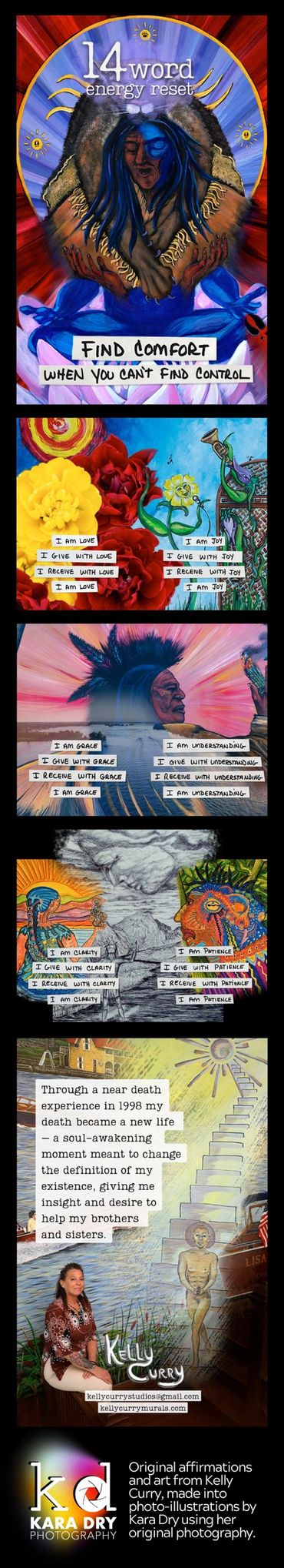 A collection of original affirmations, founded through personal experience and practiced with success by the author and artist Kelly Curry in her life; artwork is snippets of her original mural.